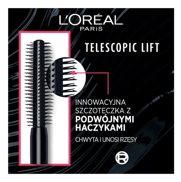 Telescopic L'Oréal Paris Lift maskara, która daje efekt nawet o 5 mm* dłuższych rzęs, unosi je i dodaje im objętości. Rezultatem są oszałamiające, długie, uniesione rzęsy, które utrzymują się do 36 godzin.