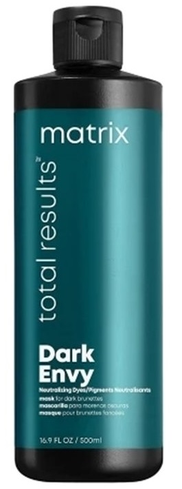 Matrix Total Results Dark Envy maska tonująca, bogata w zieloną formułę z niebiesko-żółtym bezpośrednim barwnikiem, który neutralizuje czerwone odcienie i dodaje głębokie chłodne odcienie do ciemnych baz. Czerwone odcienie w ciemnych bazach mogą być spowodowane przez słońce, wodę, chlor, rozjaśnianie oraz procesy chemiczne lub nadmierne użycie gorących sprzętów typu suszarka lub prostownica. Przeznaczony jest do włosów farbowanych i normalnych. Głęboko odżywia włosy, nawilża i dodaje im blasku.