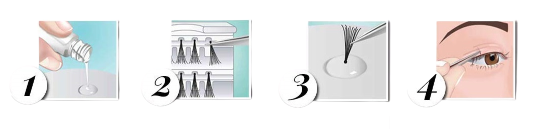 - Delikatnie zanurz podstawę rzęs w kleju.