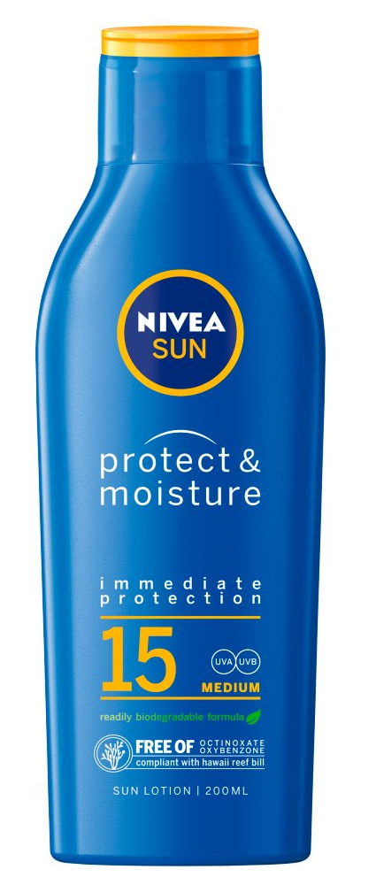 NIVEA Sun Nawilżający balsam ochronny do opalania SPF 15Pielęgnacja: Pielęgnująca formuła balsamu zapewnia intensywne i długotrwałe nawilżenie skóry pozostawiając ją gładką i jedwabistą w dotyku. Dodatkowo pomaga zredukować ryzyko wystąpienia alergii słonecznej,Ochrona: Zawiera wysoce skuteczny system filtrów UVA/UVB, zapewniający natychmiastową i skuteczną ochronę przed promieniowaniem słonecznym. Produkt pomaga zapobiegać oparzeniom oraz przedwczesnemu starzeniu się skóry. Jego dużą zaletą jest wodoodporność. Produkt NIVEA Sun posiada łatwo biodegradowalną formułę. W 100% zgodne z Hawajskim Rozporządzeniem Ochrony Rafy Koralowej. Produkt bez oktoksylanu i oksybenzonu.Zaufaj jakości NIVEA Sun!