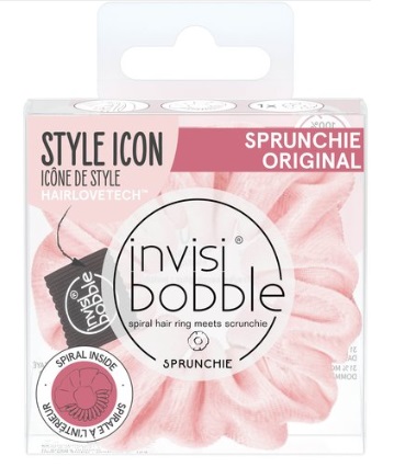 Invisibobble Sprunchie to gumka do włosów, wewnątrz której ukryta została klasyczna Invisibobble Original. Gumki nawiązują stylem do lat 90. Zapewnia wysoki komfort noszenia. Gumka nie ciągnie i nie wyrywa włosów. Sprężynowa konstrukcja sprawia, że gumka utrzymuje się na włosach przez cały dzień, nie niszcząc struktury włosów i nie łamiąc ich. Nie ściska włosów ciasno i nie pozostawia na włosach widocznych śladów. Wykonana z miękkiego materiału, wytrzymała. Gumka pięknie wygląda noszona również jako bransoletka.