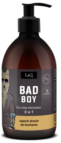 ✔️ Żel pod prysznic BAD BOY z ciemnej strony LAQ 500 ml - Kawał ze mnie drania, ale takiego do kochania. Ciągnie mnie czasem do lasu, z którego wracam głodny jak wilk i brudny jak… jak to facet. Więc kiedy idę się wreszcie umyć, nie wywołuj wilka z łazienki! Znajdziesz we mnie nawilżającą glicerynę pochodzenia roślinnego oraz kompleks dobroczynnych aminokwasów, w skład którego wchodzi arginina, alanina, seryna, walina, prolina i treonina. Zawieram również ekstrakt z liści tytoniu szlachetnego, który działa antyoksydacyjnie i chroni przed wolnymi rodnikami.