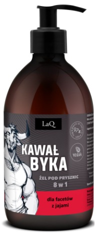 ✔️ Żel pod prysznic KAWAŁ BYKA z ciemnej strony LAQ 500 ml - naturalny i wegański żel pod prysznic dla mężczyzn, w szczególności dla niezłych byków. Dzięki mojej formule nawet po najcięższym dniu wrócisz na arenę świeży, pachnący i gotowy do działania! To co, gotowy na bycze wyzwania? Zmyję z Twojego ciała wszystkie zanieczyszczenia, pozostawiając je odświeżone i gotowe na kolejne wyzwania. Dzięki roślinnym proteinom oraz ekstraktowi z żeń-szenia Twoja skóra będzie nawilżona i zregenerowana, a Ty pełen energii do działania.
