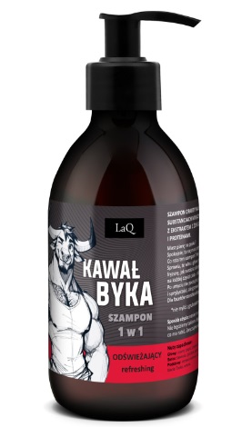 Szampon dla facetów 1 w 1 KAWAŁ BYKA 300 ml – naturalny i wegański męski szampon do włosów o działaniu odświeżającym. Przede wszystkim zawiera ekstrakt z szeń-szenia oraz białkooo (znaczy się: proteiny). Jako niezły kawał byka jest zawsze gotowy do akcji!