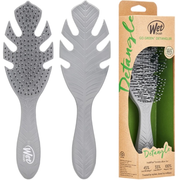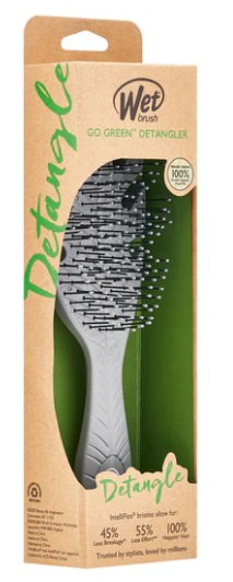 Poznaj Wet Brush Accessories Go Green Detangler - Grey, rewolucyjną szczotkę wykonaną z całkowicie naturalnej, biodegradowalnej skrobi roślinnej, która naturalnie rozłoży się w ciągu 5 lat. Ekskluzywne, ultramiękkie włosie IntelliFlex z łatwością rozplątuje splątane włosy. Minimalizuje ból i chroni przed rozdwajaniem się końcówek i łamaniem się włosów. Pozwala szczotkować z mniejszą siłą, dzięki czemu możesz rozczesać włosy, nie uszkadzając ich. Nadaje się do każdego rodzaju włosów, również do przedłużeń i peruk. Sprawdza się zarówno na suchych, jak i wilgotnych włosach.